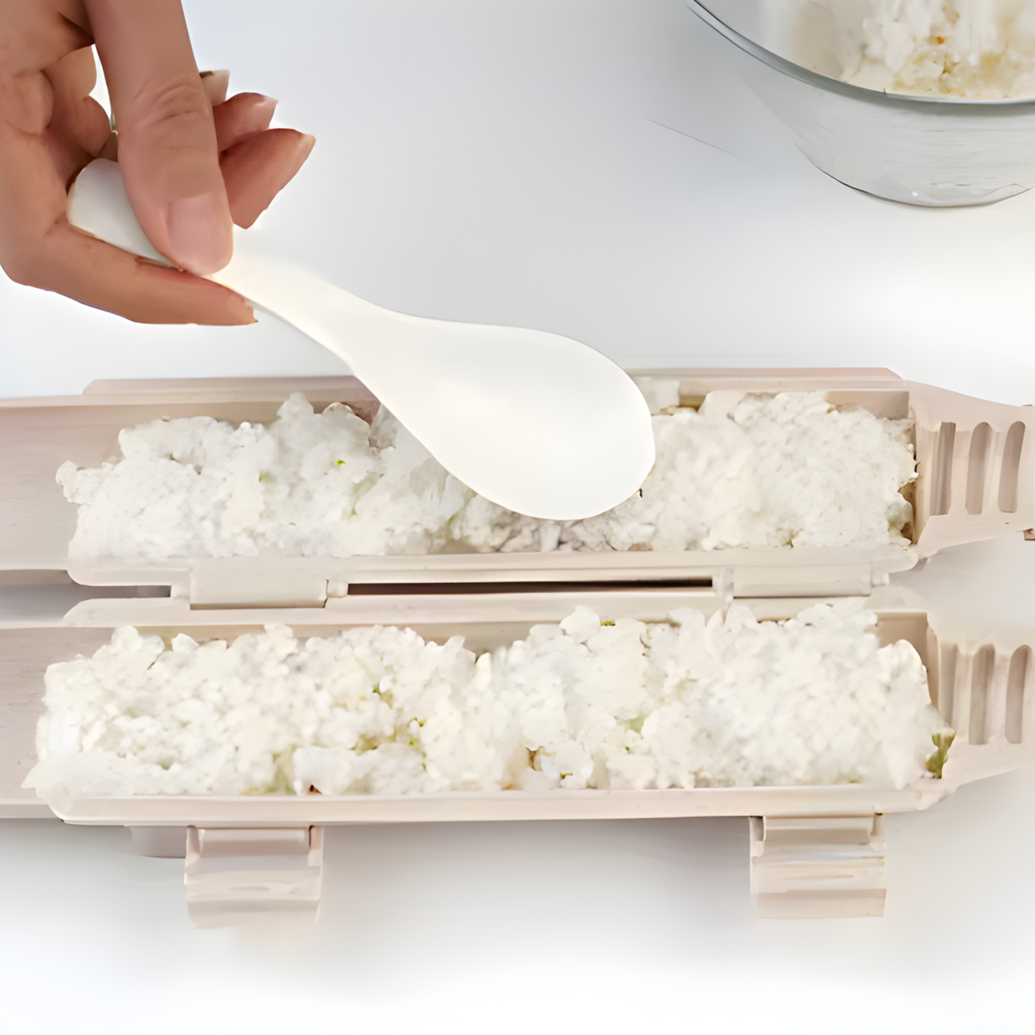 Su sistema de prensado uniforme compacta el arroz y el relleno en segundos, evitando que se desarme o quede desigual.